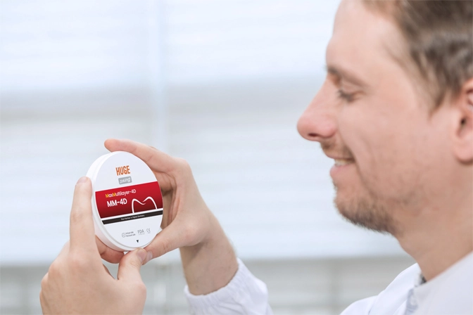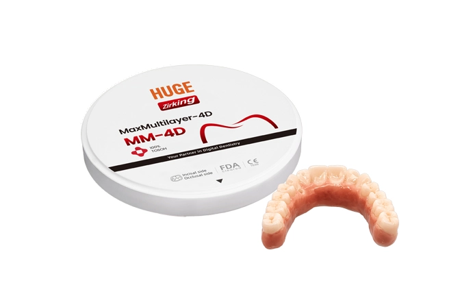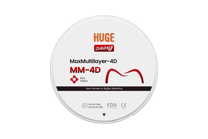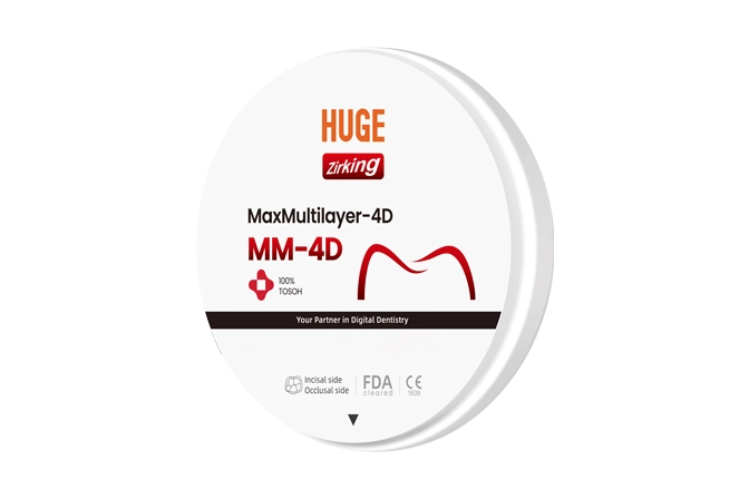 MM-4Dにより、ジルコニア修復物の色、透磁率、強度、硬度の自然な勾配が実現します。 8層が重ねられ、15層が勾配である。 MM-4Dは、美観と機能性の両方の点で、フルアーチインプラントでサポートされているモノリシックジルコニア修復に最適な製品です。
