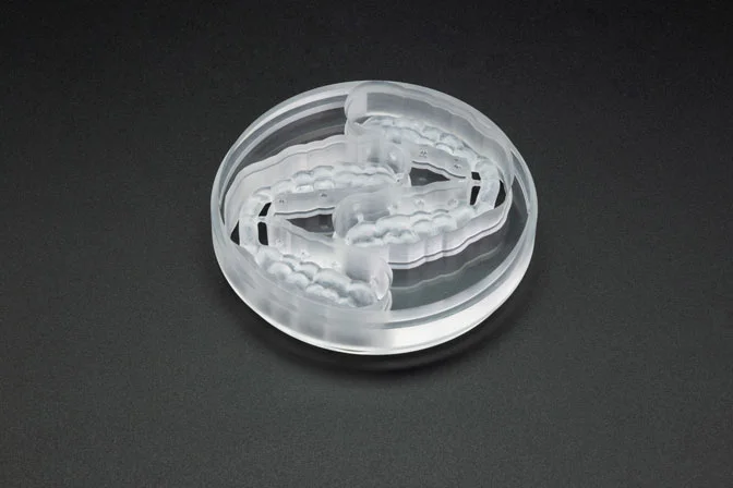クリアPMMAブロックは、ナイトガードとインプラント手術ガイドのプロセスにデジタルソリューションを提供します。 クリスタルの外観と優れた靭性により、これらの用途に適しています。