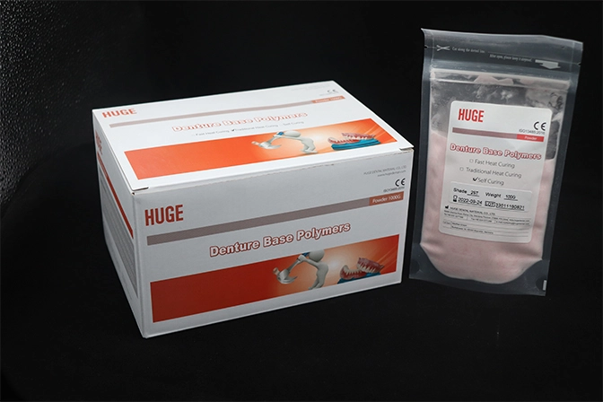 HUGEは、義歯を作るために、ラボの技術者のニーズを満たすために、さまざまな硬化タイプと色合いを備えた一連の義歯ベースポリマーを提供しています。 この種の誇りには、歯科における自己硬化アクリル液、自己硬化歯科アクリル粉末、および自己硬化アクリル樹脂が含まれます。 この製品は、自然の美しさ、耐落下性、泡なしなどのさまざまな利点を備えています。