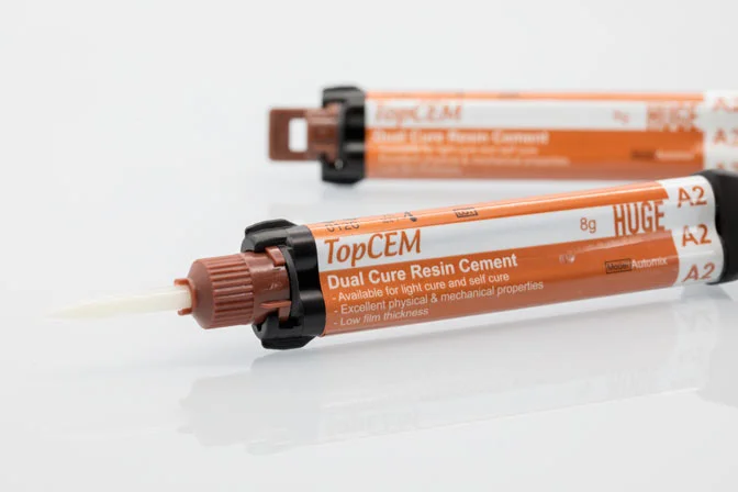 TopCEMは、化学的硬化と光硬化の両方が可能な、用途が広く究極の歯科用二重硬化のルーティング樹脂セメントです。